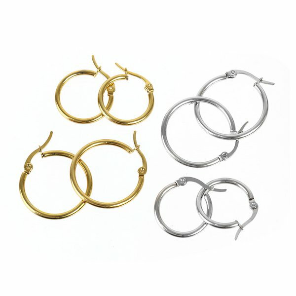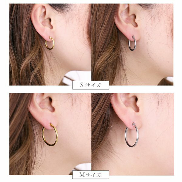 商品の説明シンプルで程よいサイズのメタルカラーのフープピアス。